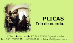 Esta es la página web del grupo "PLICAS" formado por Candela Carrera Casaprima (chelista y actualmente estudiante del conservatorio profesional de música de Gijón en su 5º grado profesional), Sara Fernández García-Valcarcel (2º violinista y actualmente estudiante del conservatorio profesional de musica de Gijón en su 4º grado porfesional)y Silvia Cadenas Valdés (1º violinista y como sus compañeras, estudiante del conservatorio profesional de música de Gijón en su 5º grado profesional).